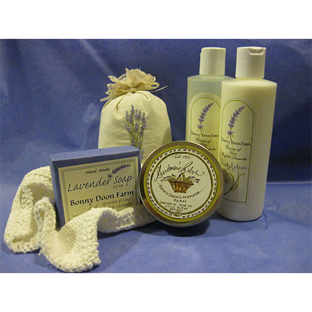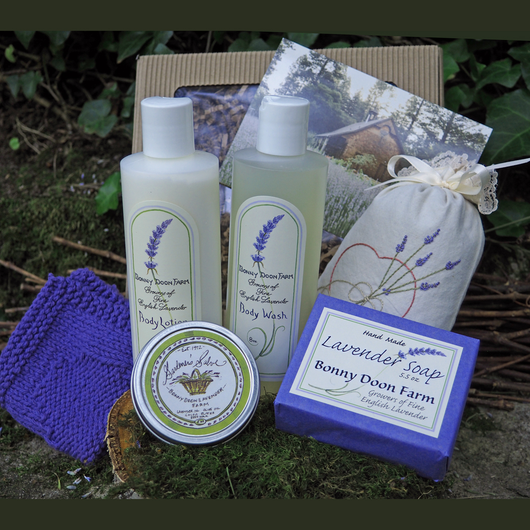 Lavender Gift Set is perfect for Mother’s Day, Birthdays, Graduations, Anniversaries or any other Special Occasion. Included in this gift box are lotion, body wash, large soap, salve, crochet cotton washcloth (red or white) and a special sachet filled with lavender buds, all handmade at the Farm.